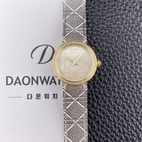 • 레플리카 [디올] 여성용 라디드 사틴 25mm 다이아몬드 쿼츠 무브먼트 화이트 자게 다이얼 dio1006