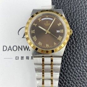 레플리카 [튜더] 남성용 로얄 워치 오토매틱 스위스 ETA2836-2 타입 18K 옐루골드 41mm 메탈줄 브라운 다이얼 tud5134