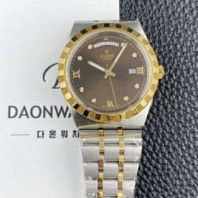 • 레플리카 [튜더] 남성용 로얄 워치 오토매틱 스위스 ETA2836-2 타입 18K 옐루골드 41mm 메탈줄 브라운 다이얼 tud5135