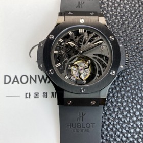 • 레플리카 [휴블렛] 남성용 빅뱅 블랙 PVD 코팅 투어빌론 탑재 무브먼트 스켈레톤 다이얼 hub2154