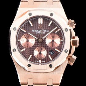 레플리카 [오데마피게] 남성용 NEW 로얄오크 26331OR.OO.1220OR.02 18K 로즈골드 41mm 사이즈 드레스 워치!! 크로노그래프 브라운 와플 다이얼 브레이슬릿 신형 ETA 7750B-2 오토매틱 무브먼트 AUD0121