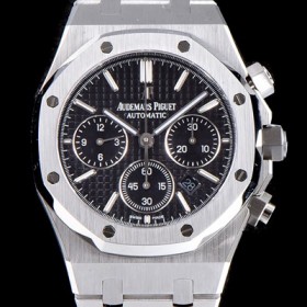 레플리카 [오데마피게] 남성용 NEW 로얄오크 26320ST.OO.1220ST.01 41mm 사이즈 드레스 워치!! 크로노그래프 블랙 와플 다이얼 브레이슬릿 신형 ETA 7750B-2 오토매틱 무브먼트 AUD0141