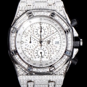 Audemars Piguet Royal Oak Offshore TOP Grade Quality White Gold Full Diamond Setting Bracelet Japan VK Quartz Movemen