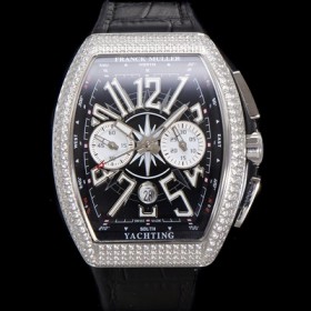 • 레플리카 [프랭크뮬러] 남성용 뱅가드 다이아셋팅 오토매틱 크로노그래프 7750 타입 44mm 가죽줄 블랙 다이얼 fra8244