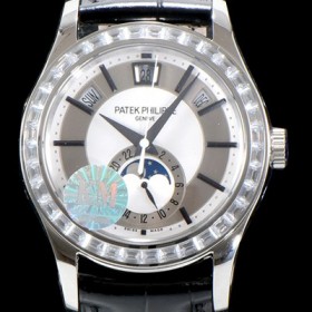 Patek Philippe Complications baguette-cut Diamond Bezel Annual Calendal Day-Date Moonphase Grey&White Dial Cal.324 S C Automatic Movement