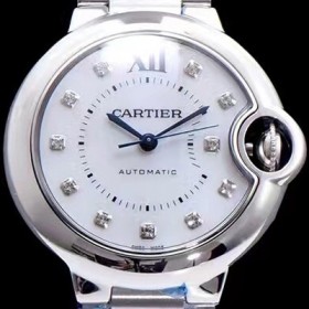 Cartier Ballon Bleu De Cartier Diamond Index White Silver Sun Dust Dial Bracelet Automatic Movement