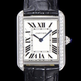 레플리카 [까르띠에] 여성용 탱크 WJTA0011 로마 인덱스 31mm 화이트 다이얼 커플용 악어가죽 쿼츠 무브먼트 CAR0500