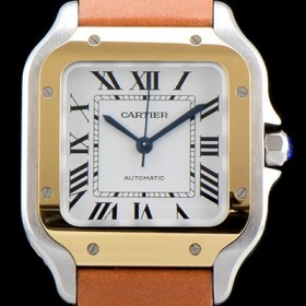 레플리카 [까르띠에] 남성용 산토스 드 까르띠 W2SA0007 "18K 옐로우골드 베젤" 미듐 모델 정품 동일 사이즈 실버 마감 오팔린 다이얼 오토매틱 무브먼트 CAR4010