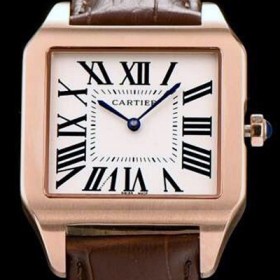 레플리카 [까르띠에] 남여공용 산토스 시리즈 9015 무브먼트 로즈골드 베젤 화이트 다이얼 CAR0012