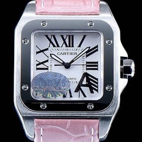 Cartier Santos 100 Ladies Man's Watch White Dial Pink Leather Strap High quality Automatic Movement