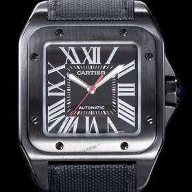 레플리카 [까르띠에] 남성용 "블랙카본" 모델 UP!! 산토스 100 워치 W2020010 올블랙 ADLC 코팅 블랙 다이얼 오토매틱 무브먼트 CAR4030