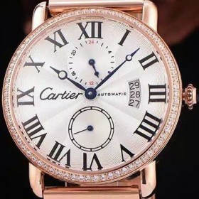 레플리카 [까르띠에] 남성용 롱드더 까르띠에 서브 세컨즈 18k 로즈골드 쥬얼 다이아몬드 베젤 물결무늬 화이트 다이얼 블랙 로마 인덱스 스위스 ETA 2824-A2오토매틱 무브먼 CAR0301