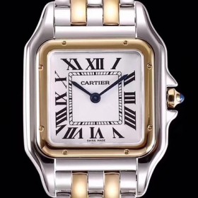• 레플리카 [까르띠에] 여성용 NEW 쿼츠 타입 팬더 드 까르띠에 워치 W2PN0007 미듐 모델 18K 옐로우 골드&스틸 케이스 화이트 다이얼 브레이슬릿 스위스 쿼츠 무브먼 CAR4045