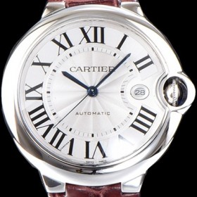 레플리카 [까르띠에] 남성용 2019신상 발롱블루 W69016Z4 42mm 브라운 악어가죽 밴드 화이트 다이얼 오토매틱 무브먼트 CAR0510