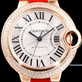레플리카 [까르띠에] 여성용 발롱블루 WE902066 18K 로즈골드 33mm 다이아몬드 베젤 화이트 다이얼 오토매틱 무브먼트 CAR0504