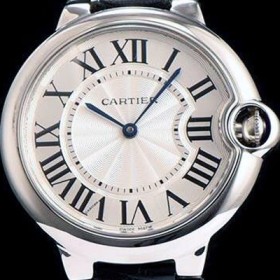 Cartier Ballon Bleu White Dial on Black Leather Strap