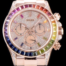 • 레플리카 [로렉스] 남성용 신형 데이토나!! 코스모그래프 "레인보우" 무지개 컬러 바게크 컷 사파이어 36개 세팅 베젤 다이아몬드-핑크자게 다이얼 오이스터 브레이슬릿 7750B-2 오토매틱 무브먼트 ROL0510