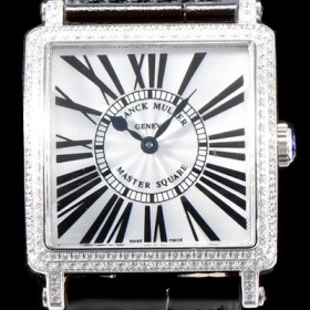 Franck Muller Master Square Ladies Diamond Bezel White Dial Swiss Quartz Movement