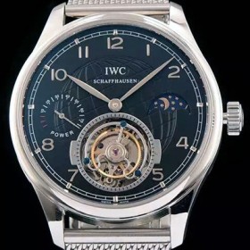 레플리카 [아이더블유씨] 남성용 포르투기즈 투어빌론 문페이즈 파워리져브 실버 인덱스 블랙 다이얼 스틸 메쉬 브레이슬릿 IWC0212