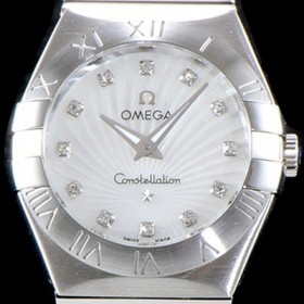 • 레플리카 [오메가] 여성 컬렉션 컨스틀레이션 123.10.27.20.55.001 오메가 코-액시얼 27MM 로마 숫자가 인그레이빙된 베젤 화이트 자개 다이얼 쿼츠 무브먼트 OMG0124