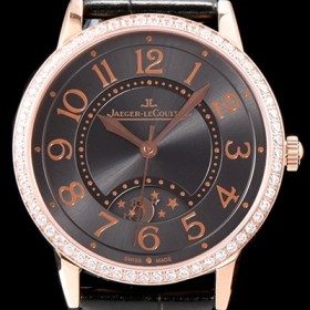 • 레플리카 [예거르꿀르뜨] 남성용 랑데부 나잇&데이 3442150 레이디 워치 18K 로즈골드 최상급 다이아몬드 세팅 베젤 문페이즈 그레이 다이얼 오토매틱 무브먼트 JAG0421