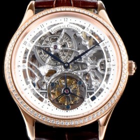 Jaeger-LeCoultre Master Grand Tourbillon 18k Rose Gold Case Diamonds Bezel White&Silver Skeleton Dial Tourbillon Hand Winding Movement
