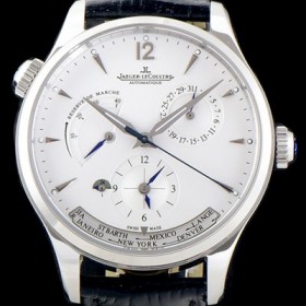 레플리카 [예거르쿨트르] 남성용 신형 월드타임 모델!! 마스터 1428421 "지오그래픽 월드타임" 화이트 다이얼 오토매틱 무브먼트 JAG0201