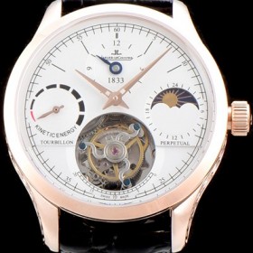 • 레플리카 [예거르쿨트르] 남성용 마스터 그랑 트래디션 5043480 1833퍼페추얼 18K 로즈골드 케이스 화이트 다이얼 아시안 투어빌론 탑재 무브먼트 JAG0413