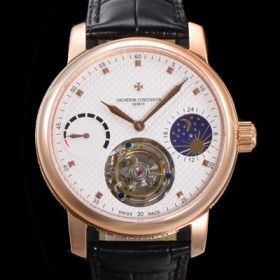 • 레플리카 [바쉐런콘스탄틴]남성용 트레디셔널 투어빌론 오토매틱 문페이즈 44mm 18K 로즈골드 가죽줄 화이트다이얼 vac27348