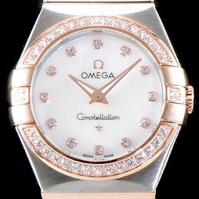 레플리카 [오메가] 남성용 여성 컬렉션 컨스틀레이션 123.25.24.60.55.001 오메가 코-액시얼 27MM 다이아몬드 세팅 베젤 화이트 자개 다이얼 18K 로즈골드 콤비 쿼츠 무브먼트 OMG4125