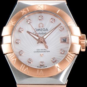 레플리카 [오메가] 남성용 여성 컬렉션 컨스틀레이션 123.20.27.20.55.001 오메가 코-액시얼 27MM 로마 숫자가 인그레이빙된 베젤 18K 로즈골드 콤비 화이트 자개 다이얼 쿼츠 무브먼트 OMG4121