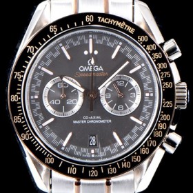 레플리카 [오메가] 남성용 스피드마스터 329.23.44.51.06.001 18K 로즈골드 레이싱 코-액시얼 마스터 크로노미터 타키미터 크로노그래프 그레이 다이얼 브레이슬릿 일본 수입산 쿼츠 무브먼트 OMG0544