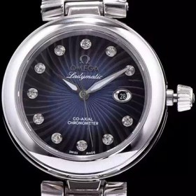 레플리카 [오메가] 남성용 드빌 신형 레이디매틱!! 425.32.34.20.56.001 입체형 블루 다이얼 쥬얼 다이아몬드 인덱스 오토매틱 무브먼트 OMG0031