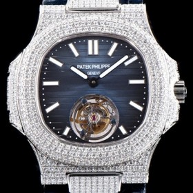 레플리카 [파텍필립] 남성용 노틸러스 뚜르비옹 최상급쥬얼 다이아몬드 풀 세팅 케이스 블루 텍스쳐 다이얼 아시안 투어빌론 탑재 PAT0102