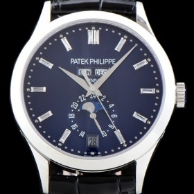 • 레플리카 [파텍필립] 남성용 신형!!컴플리케이션 5396R-014 에뉴얼 캘린더 데이-데이트 문페이즈 바게트 컷 다이아몬드 인덱스 네이비 다이얼 Cal.324 S C 오토매틱 무브먼트 PAT0101