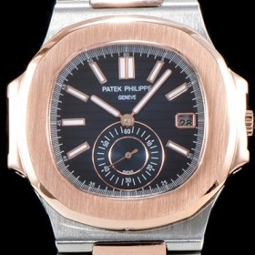 • 레플리카 [파텝필립] 남성용 노틸러스 최신버전 업그레이드형!! "스몰 세컨즈-데이트" 18K 로즈골드 콤비 네이비 텍스쳐드 다이얼 브레이슬릿 Cal. 324 자동형 무브먼트 PAT0020