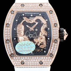 Richard Mille ourbillon Tiger & Dragon Michelle Yeoh Ladies Watch Diamonds Setting 18k Rose Gold Case Skeleton Dial ASIA 8145 Automatic Movement