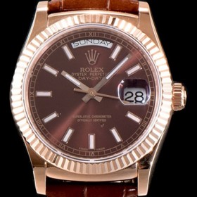 • 레플리카 [로렉스] 남성용 추가업데이트 데이데이트 18K 로즈골드 케이스 36MM 브라운 썬더스트 다이얼 UP!! 크로노미터 플루티드 베젤 오토매틱 무브먼트 ROL0530