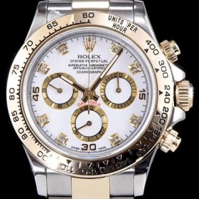 레플리카 [로렉스] 남성용 최상급 퀄리티 데이토나 116523-78593 18K 옐로골드 포금 제품!! 크로노그래프 쥬얼 다이아몬드 인덱스 18K 옐로골드 투톤 콤비 화이트 다이얼 오토매틱 무브먼트 ROL0302