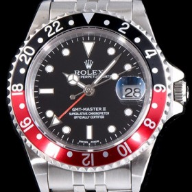 제품특징 GMT-마스터II GMT-MasterII는 12시간을 기준으로 하는 일반적인 시,분,초 외에도 24시간용 시침 및 24시간이 음각으로 표시된 양방향 회전 베젤을 장착하고 있습니다.눈에 띄는 컬러로 표시된 24시간용 시침이 가리키는 베젤의 눈금을 통해 제 1시간대의"본국 시각"을 확인할 수 있습니다.여행지 현지 시각은 와인딩 크라운의 독창적인 메커니즘을 통해 매우 간편하게 조정됩니다.시침은 분침과 초침에 영향을 주지 않고 독립적으로 움직이기 때문에 정밀한 타임키핑에 영향을 미치지 않고 새로운 시간대를 적용할 수 있습니다.