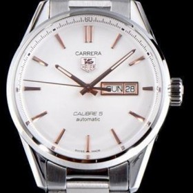 TAG Heuer Carrera Calbre 5 Day-Date Non-Chrono White Dial Bracelet 7750B-2 High Quilty Automatic Movement