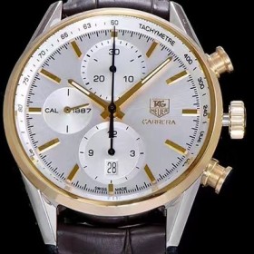 레플리카 [태그호이어] 남성용 까레라 칼리버 1887 크로노그래프 화이트 다이얼 오토매틱 무브먼트 TAG0201