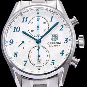 • 레플리카 [태그호이어] 남성용 까레라 1887 오토매틱 크로노 그래프 화이트 다이얼 TAG0224