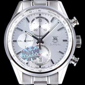 레플리카 [태그호이어] 남성용 까레라 칼리버 1887 크로노그래프 화이트 다이얼 7750 오토매틱 TAG0242