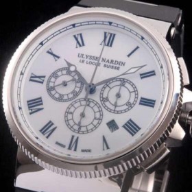 레플리카 [율리스나르당] 남성용 마린크로노그래프 44mm 로마마크 화이트 다이얼 ULY42010