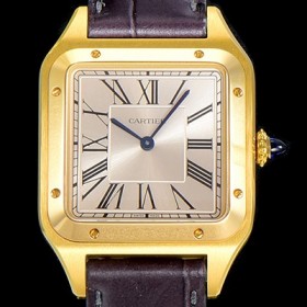 레플리카 [까르띠에]남여공용 산토스 두몽트 쿼츠 커플시계 18K 옐루골드 38미리 43미리/38미리 M/S 실버다이얼 CAR50473