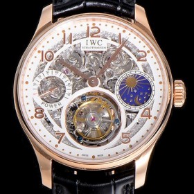 IWC Portugieser 42mm Mens hand-Widing Tourbillon Movement Skeleton Black Dial