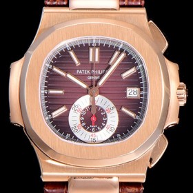 Patek Philippe Nautilus Black-Brown Dial 18KT Rose Gold Chronograph Date Mens