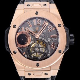 • 레플리카 [휴블렛] 빅뱅킹 파워 금장시계 남성용시게 45미리 수동/기계식 투어빌론(뚜르삐옹) 스켈레톤 다이얼 HUB59557