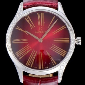 Omega De Ville Steel Trésor Diamonds 36mm Ladies Quartz Red Dial